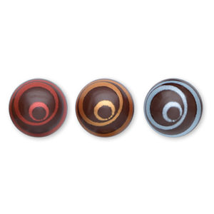 Bolas de chocolate negro con decoración brillante en superficie.